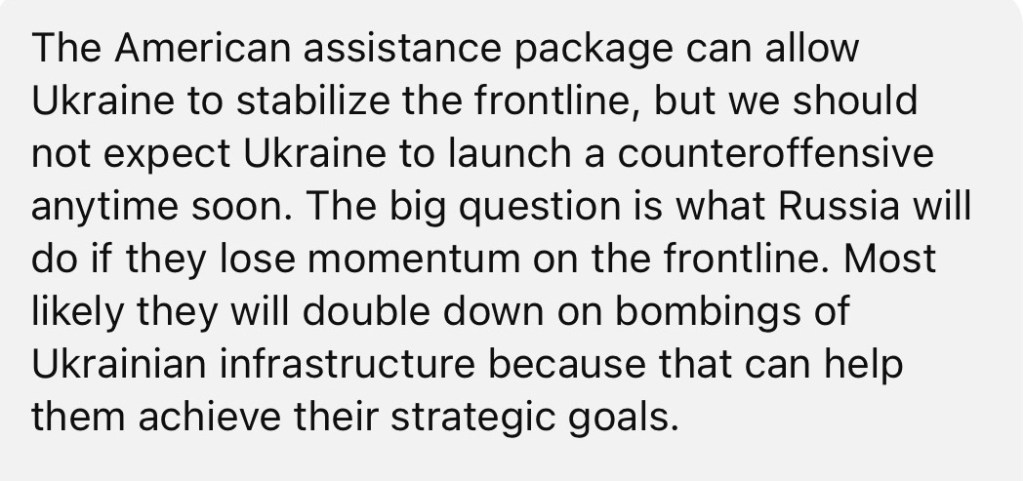 4/29/2024 – What will Russia do when Ukraine gets more weapons?