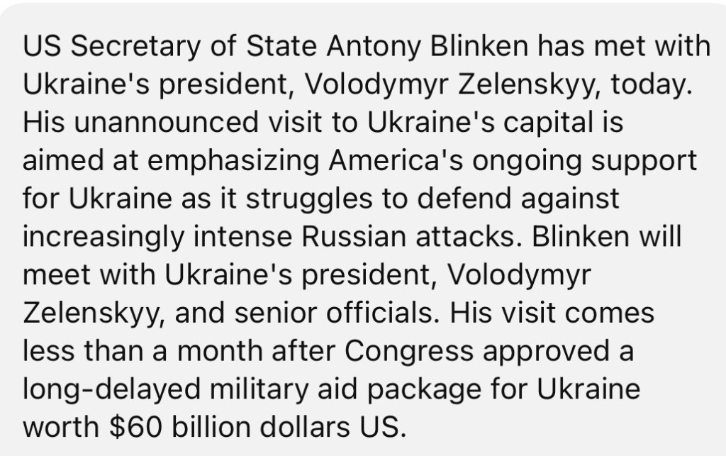 5/14/2924 — Blinken meets Zelenskyy in unannounced visit to Ukraine