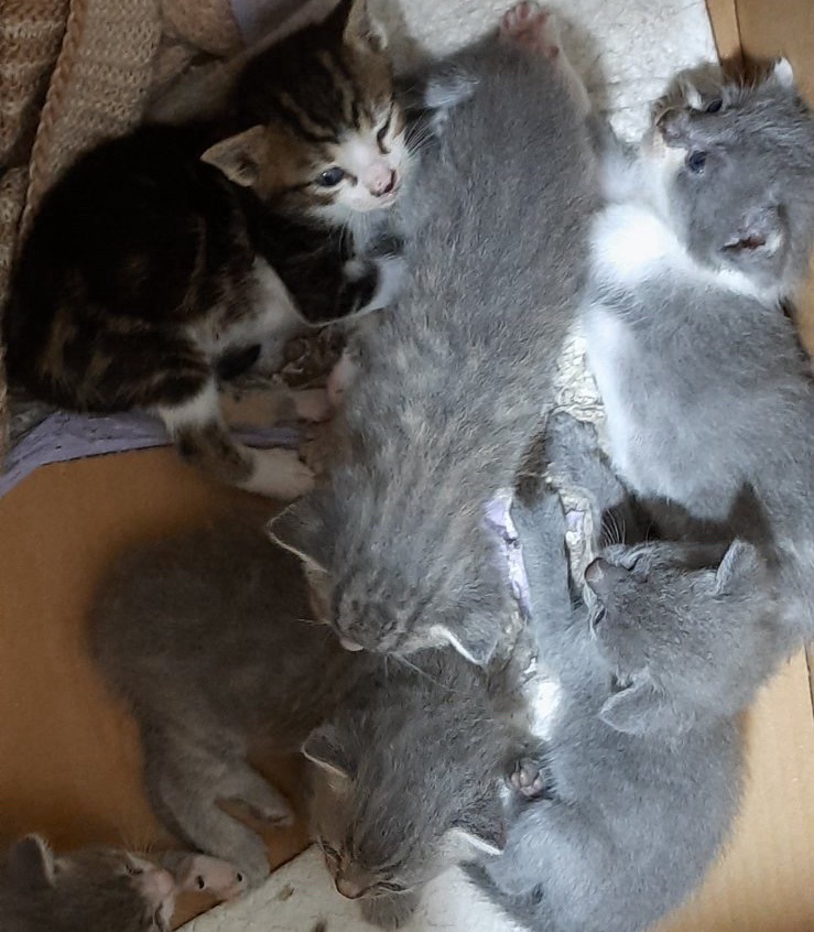 The cat who lives there gave birth to kittens, it’s fun to watch them.