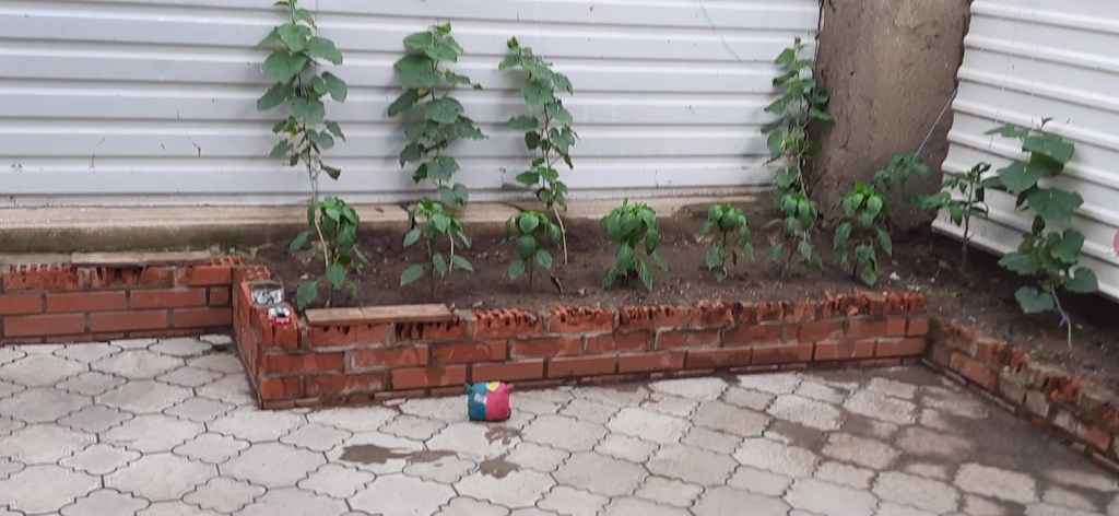 Small flower beds in the yard of our center turned into farmland. There are cucumbers growing there that are already starting to produce a harvest. Maybe it gives them at least a little feeling of home. It’s nice to come there and drink tea with them in the yard. This place becomes more comfortable and more welcoming.