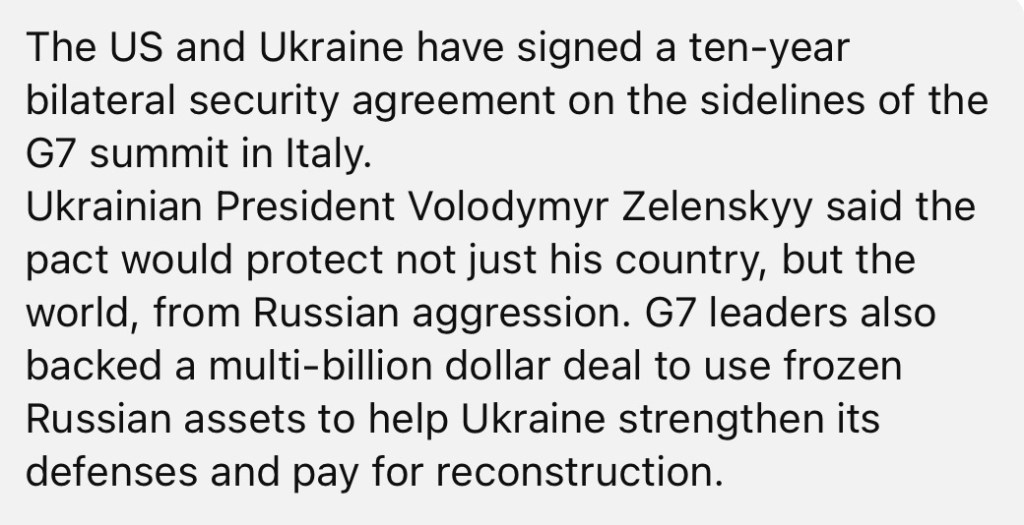 6/14/2924 — What impact will the security deal between Ukraine and USA have?