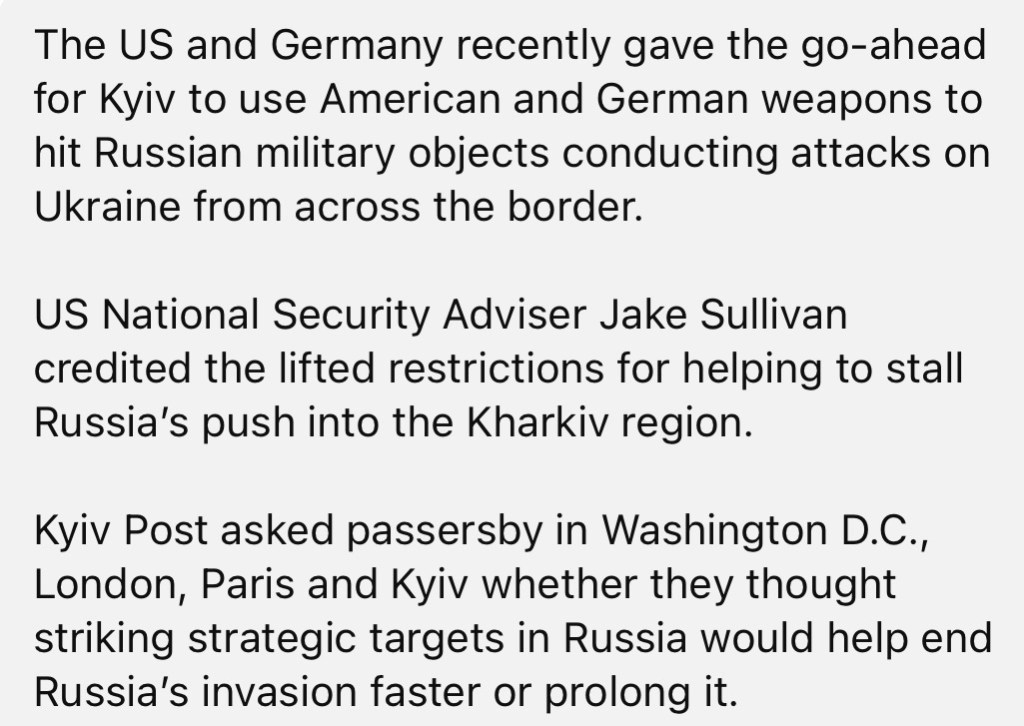 6/15/2024 — Public opinion: Will striking strategic targets in Russia end the war faster or prolong it?