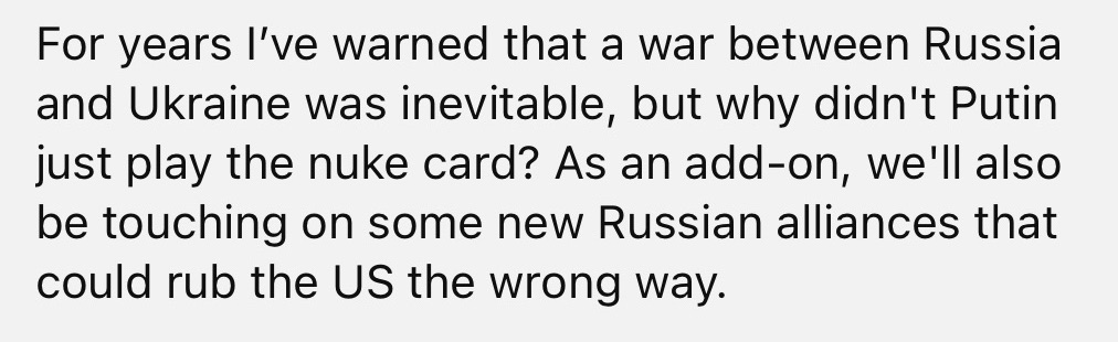 6/17/2024 — Why did Russia choose invasion over nukes?