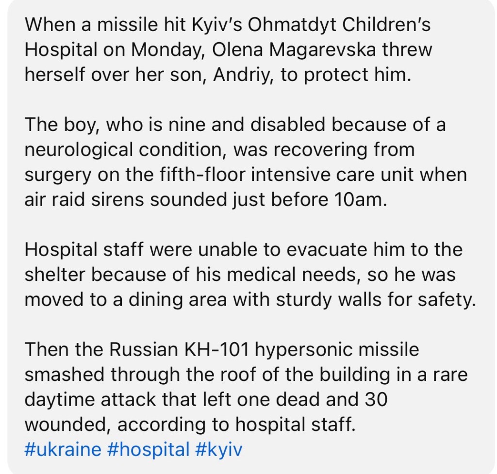 7/9/2024 — Mothers with babies nearly escape Russian strike on Kyiv hospital