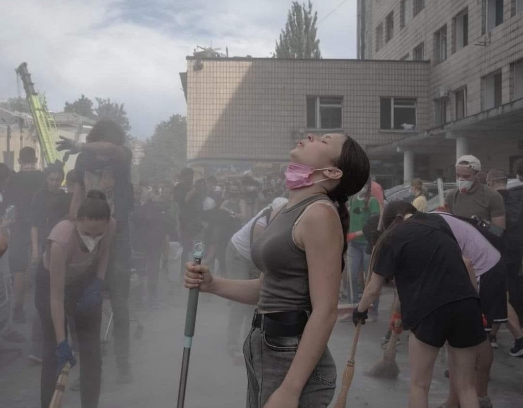 Today’s picture – Valeria, a 15-year-old volunteer, takes a deep breath while helping clear the rubble of the bombed children’s hospital. Photo by Johanna-Maria Fritz.