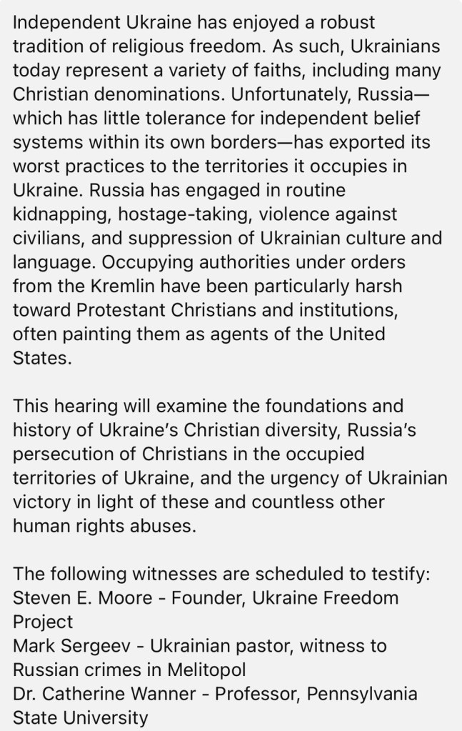 7/30/2024 — HEARING – Russia’s Persecution of Ukrainian Christians
