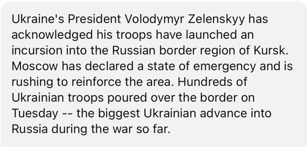 8/11/2024 — Zelenskyy acknowledges Ukrainian troops have entered Kirsk, Russia