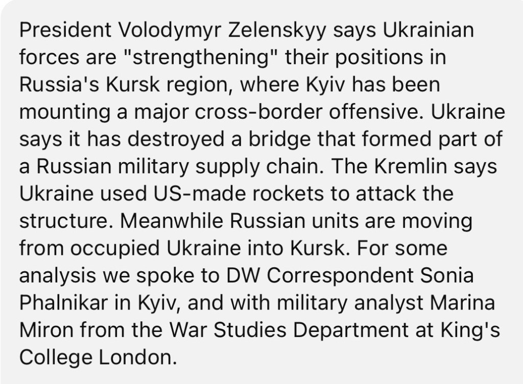8/18/2024 — Russia claims US-made rockets used to strike bridge in Kursk