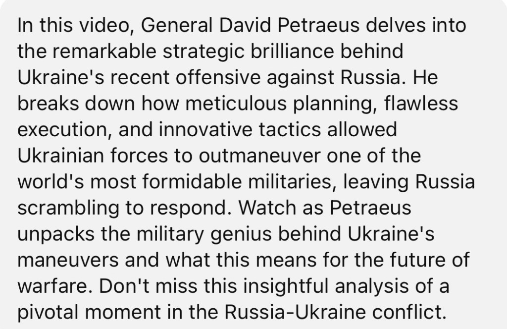 9/2/2024 — General David Petraeus – The Tactical Genius of Ukraine’s Offensive – A Humiliation for Russia