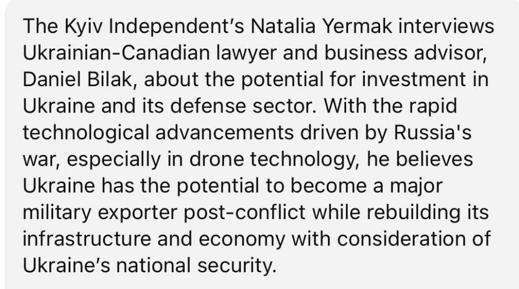 9/12/2024 — Canadian-Ukrainian lawyer, business advisor on Ukraine’s defense industry boom, reconstruction