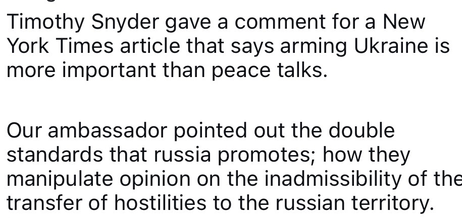 10/3/2024 — Timothy Snyder: “Arming Ukraine is more important than peace talks.”