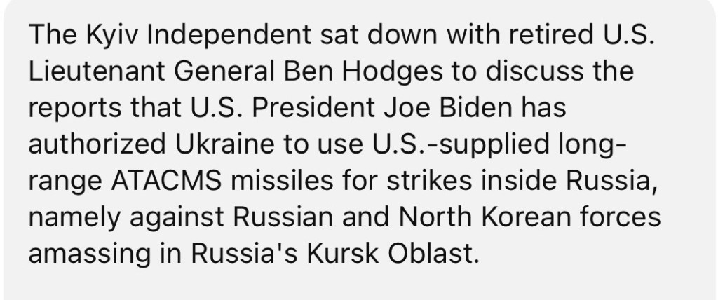 11/20/2024 — Gen. Hodges on Ukraine’s use of ATACNS in Russia’s Kursk Oblast