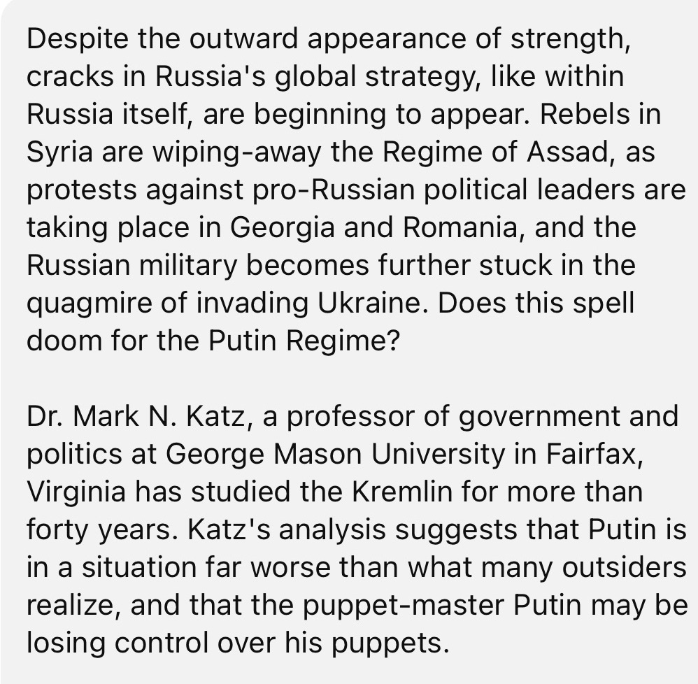 12/9/2024 — Russia on Thin Ice: Assad’s Troubles and Putin’s Global Struggles
