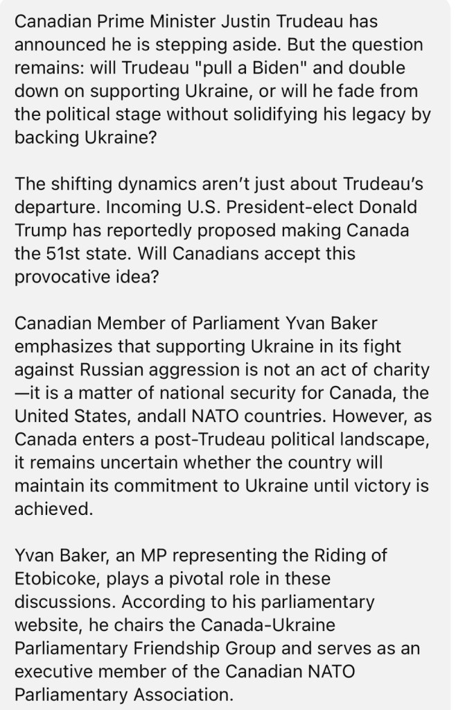 1/12/2025 — Is Canada’s Support for Ukraine in Jeopardy?