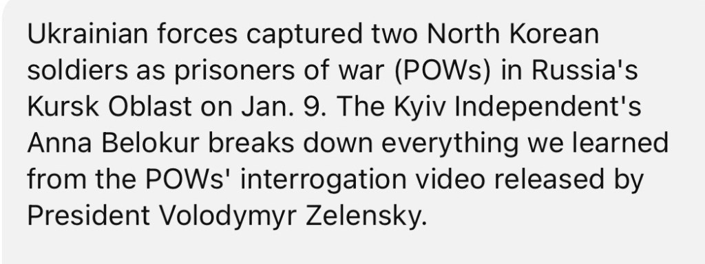 1/13/2025 — What we know about North Korean POWs captured by Ukraine