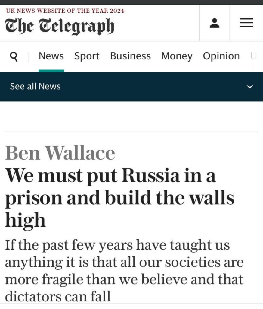 Former British Defense Secretary Ben Wallace Calls for ‘High Prison Fence’ around ruzzia: