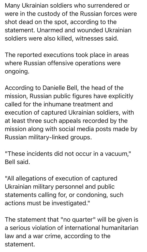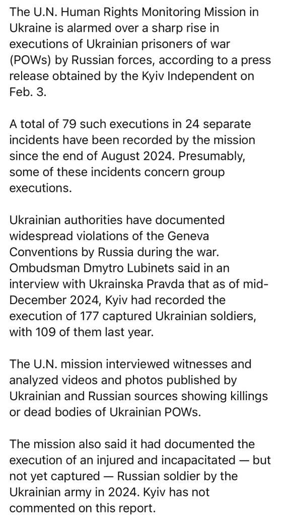 2/3/2025 — UN monitors see ‘alarming rise’ in executions of Ukrainian POW’s by Russia