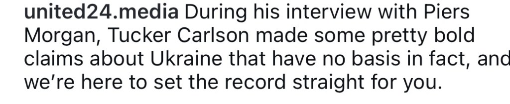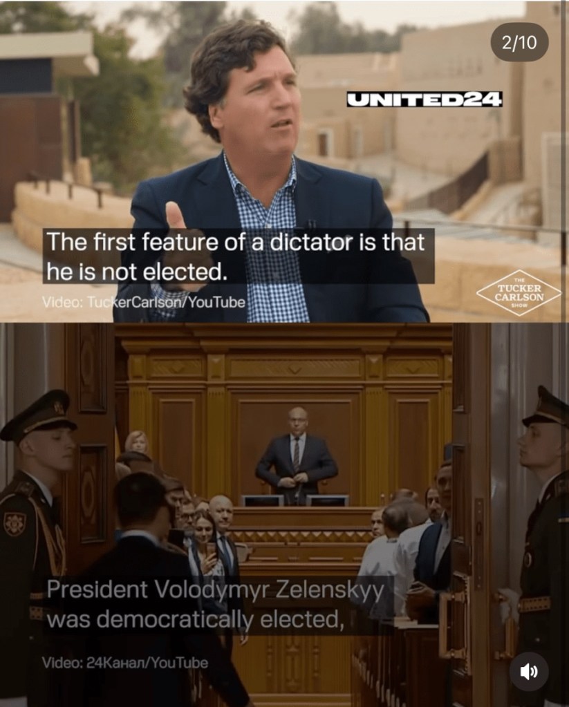 VOU – We are posting this link that was put together by United24 showing a video collage of Carlson’s false statements and the fact checked truth.