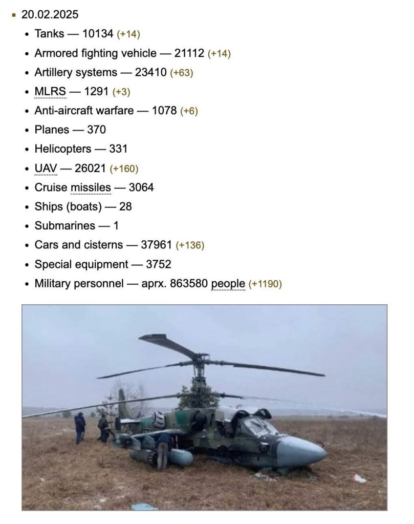 On Feb 24, 2022 putin invaded our land intending to take it over in 3 days. Well, three years later we hear again, now from our allies, that putin’s army is impossible to defeat even with help of Western allies. Too bad our friends don’t believe in their own strength! I guess they have the luxury to try to play with tactics of appeasing aggressor. We don’t have that luxury because we saw what ruzzians did and are doing on occupied territories. Partial surrender of our land now with no guarantees that after 2 -3 years putin will not come to finish us is not an option for us. Despite what our allies claim about undefeatable ruzzian army, they have suffered a lot of losses on the battlefield and from sanctions. Putin wants a break. Giving him a break while rewarding him with everything he demands is a path to a bigger war in a relatively short term.
