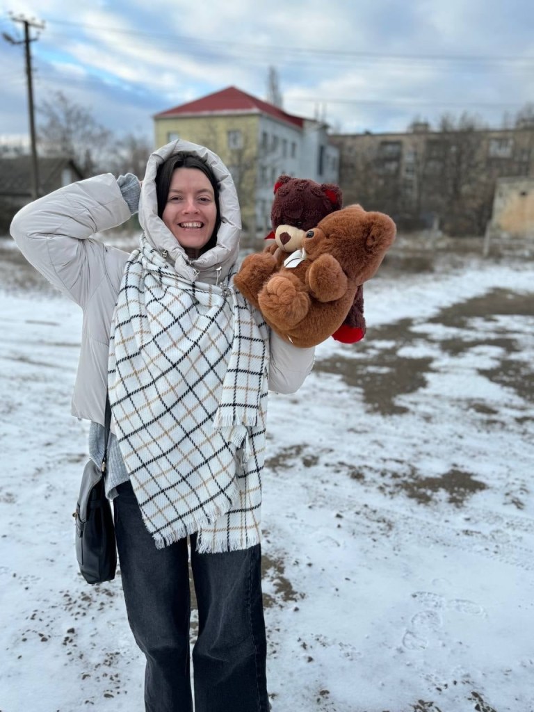 P.S. There are photos of our refugee kids, the photos of orphanage kids and you can see Vika, our new psychologist, with the teddy-bears on her way to the orphanage.