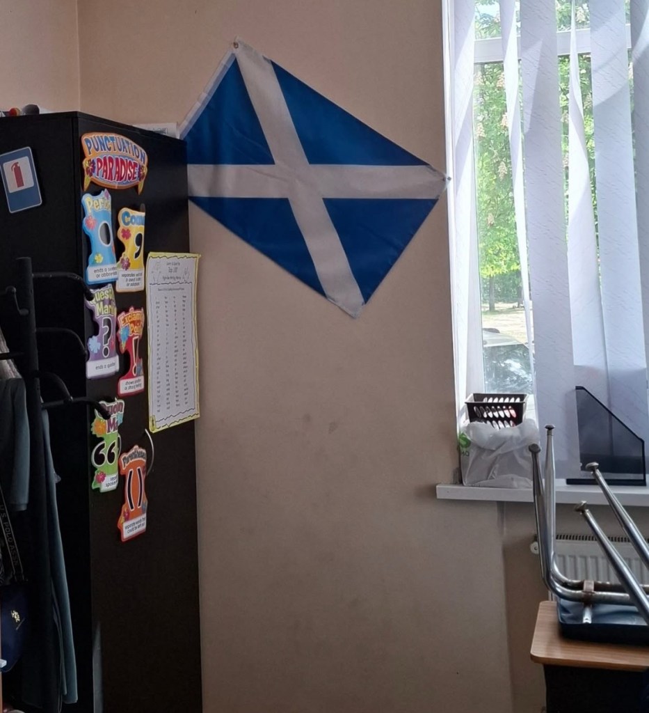 Now, we have a flag of Scotland on a wall in my classroom to remember the support and prayers of our friends there, and we dream of having a flag wall one day to remember all the love and solidarity we received from so many people across the globe.
