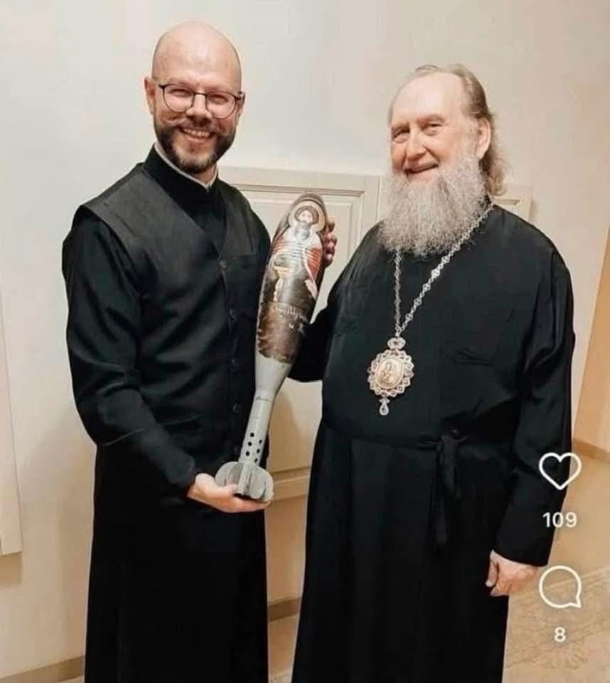 From: Roman Sheremeta — It is a real face of russian Christianity. Two “priests” holding a grenade shell with a depicted icon on it.