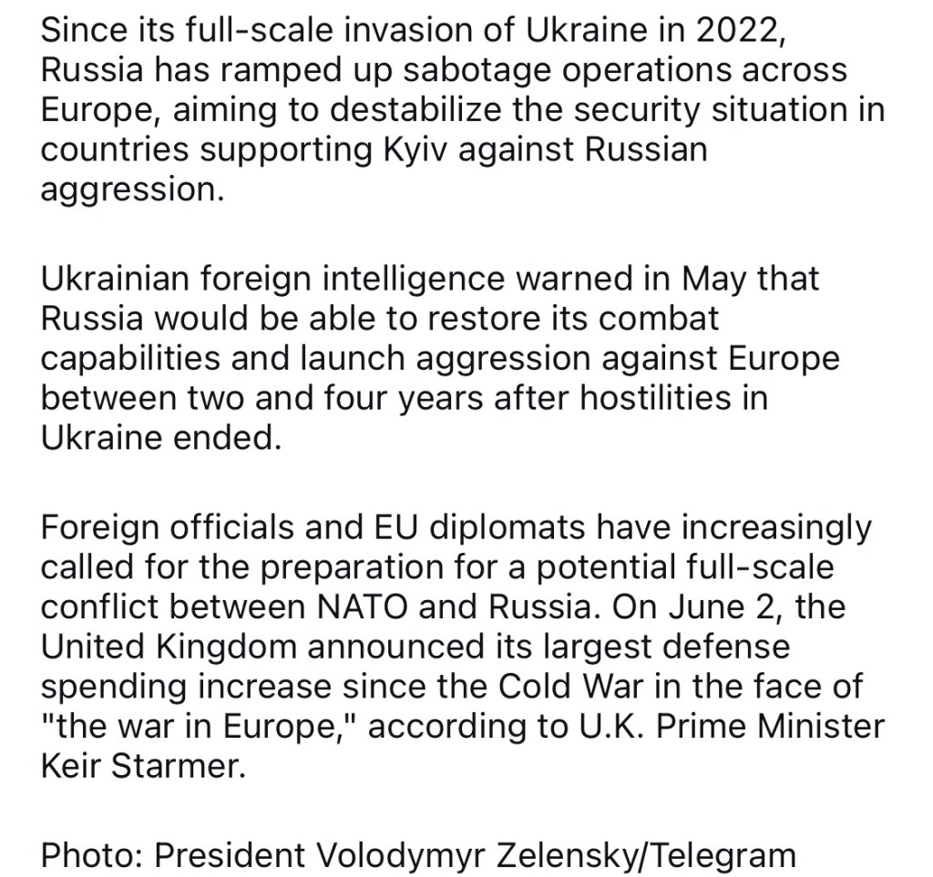 6/23/2025 — Russia preparing military operations in Europe, Zelensky says, citing intelligence
