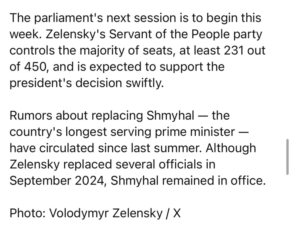 7/14/2025 — Zelensky announces next prime minister, launches government reshuffle