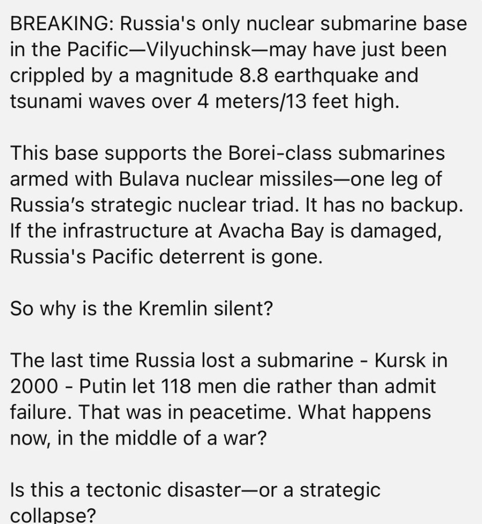 BREAKING: Putin’s Nuclear Sub Base Hit by Earthquake