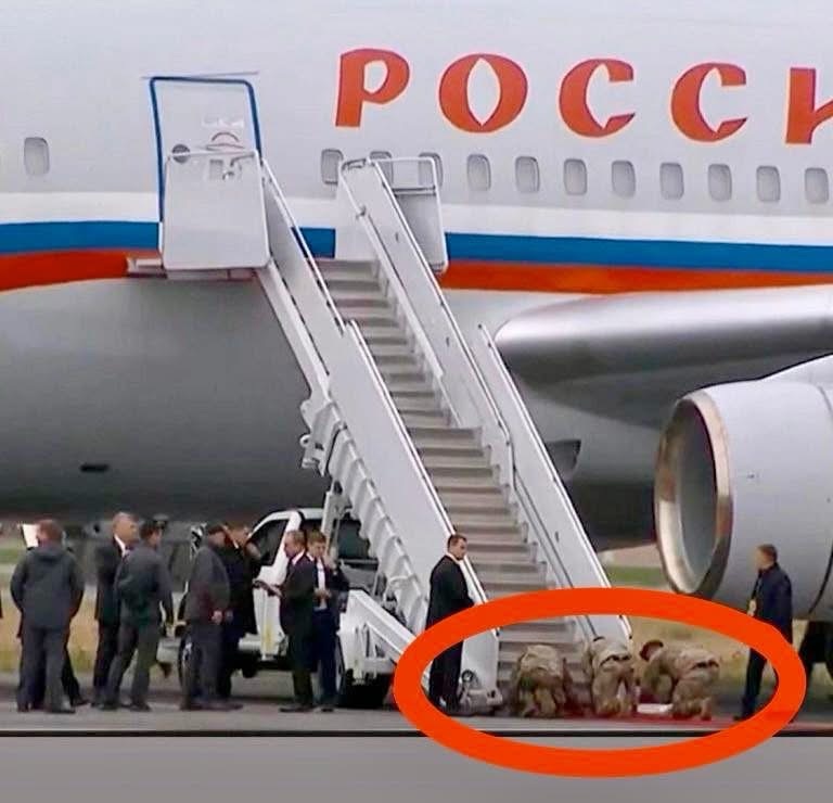 From: Maia Mikhaluk in Kyiv—The image of American soldiers kneeling by the ruzzian airplane and rolling the red carpet before the world’s #1 terrorist is truly remarkable. 🙁 I wish to unsee it.