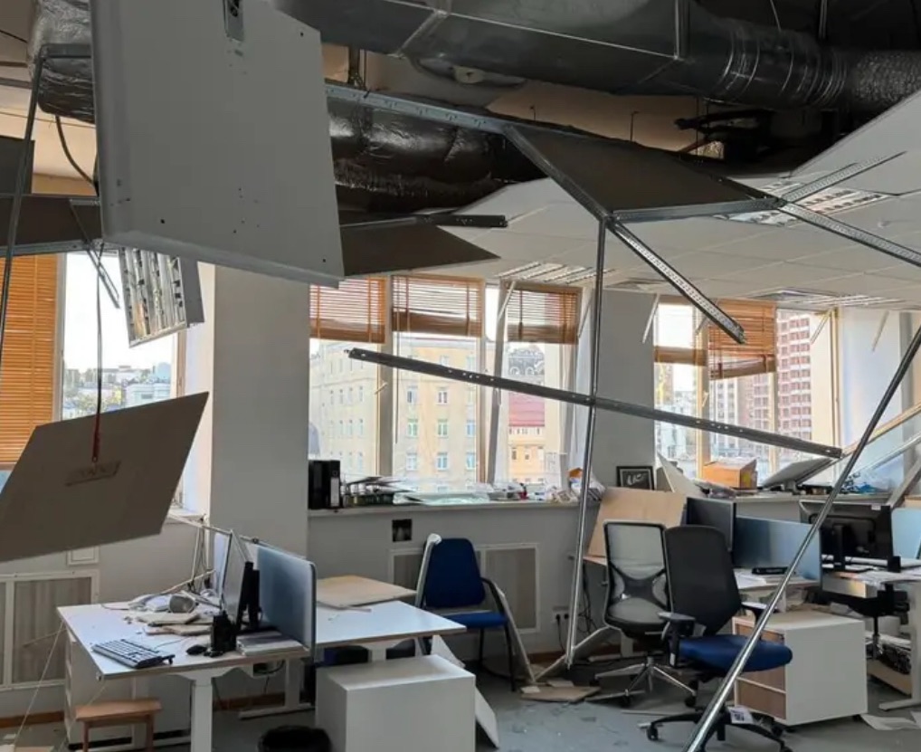 The barrage damaged hundreds of buildings around Kyiv, including the office of the EU mission to Ukraine. Pictures shared online by Ukrainian and EU authorities show shattered windows and the damaged interior of the delegation’s building.