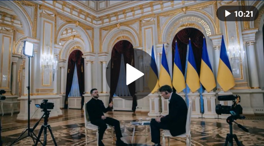 Zelenskyy was speaking after devastating Russian strikes on the country’s energy grid, leading to power cuts across most Ukrainian regions on Sunday, as engineers sought to restore the network. During the conversation the lights went out twice.